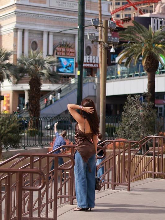 BLUSA EN SEDA MOCHA AMARRE CUELLO Y ESPALDA