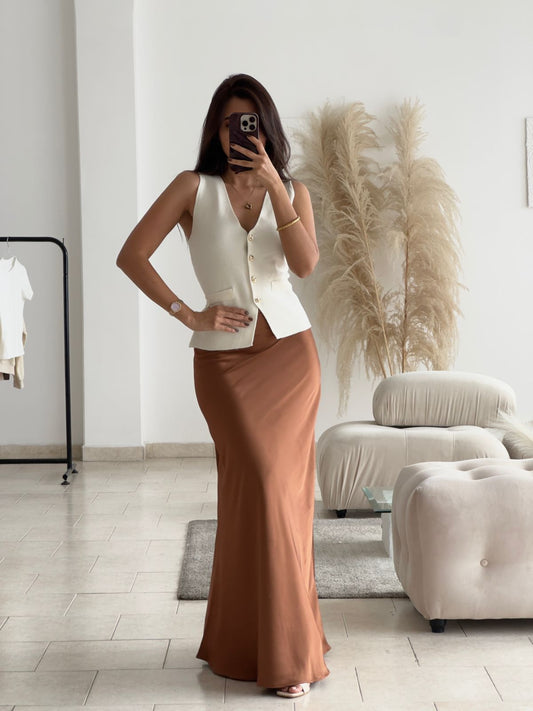 FALDA SATINADA LARGA MOCHA
