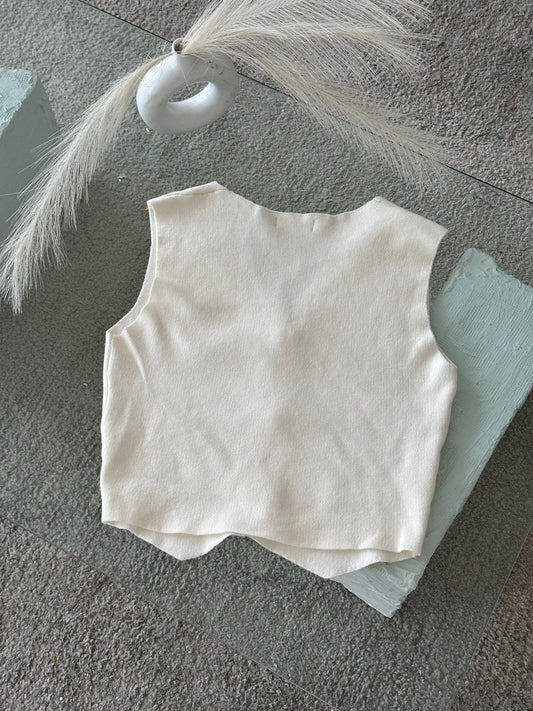 BLUSA CHALECO TEJIDA CORTA CREMA