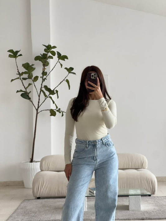 BLUSA MANGA LARGA TELA DOBLE BEIGE