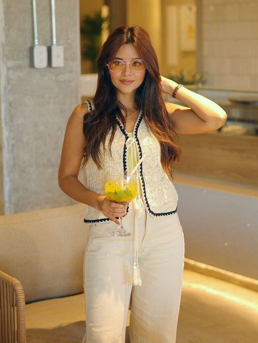 CHALECO BORDADO CON BORDES NEGROS