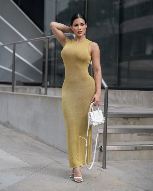 VESTIDO TEJIDO BRILLO VERDE
