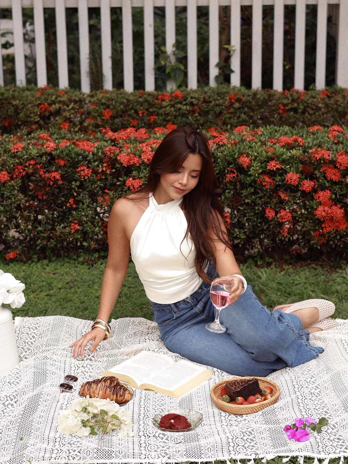 BLUSA EN SEDA CHAMPAÑA AMARRE CUELLO Y ESPALDA