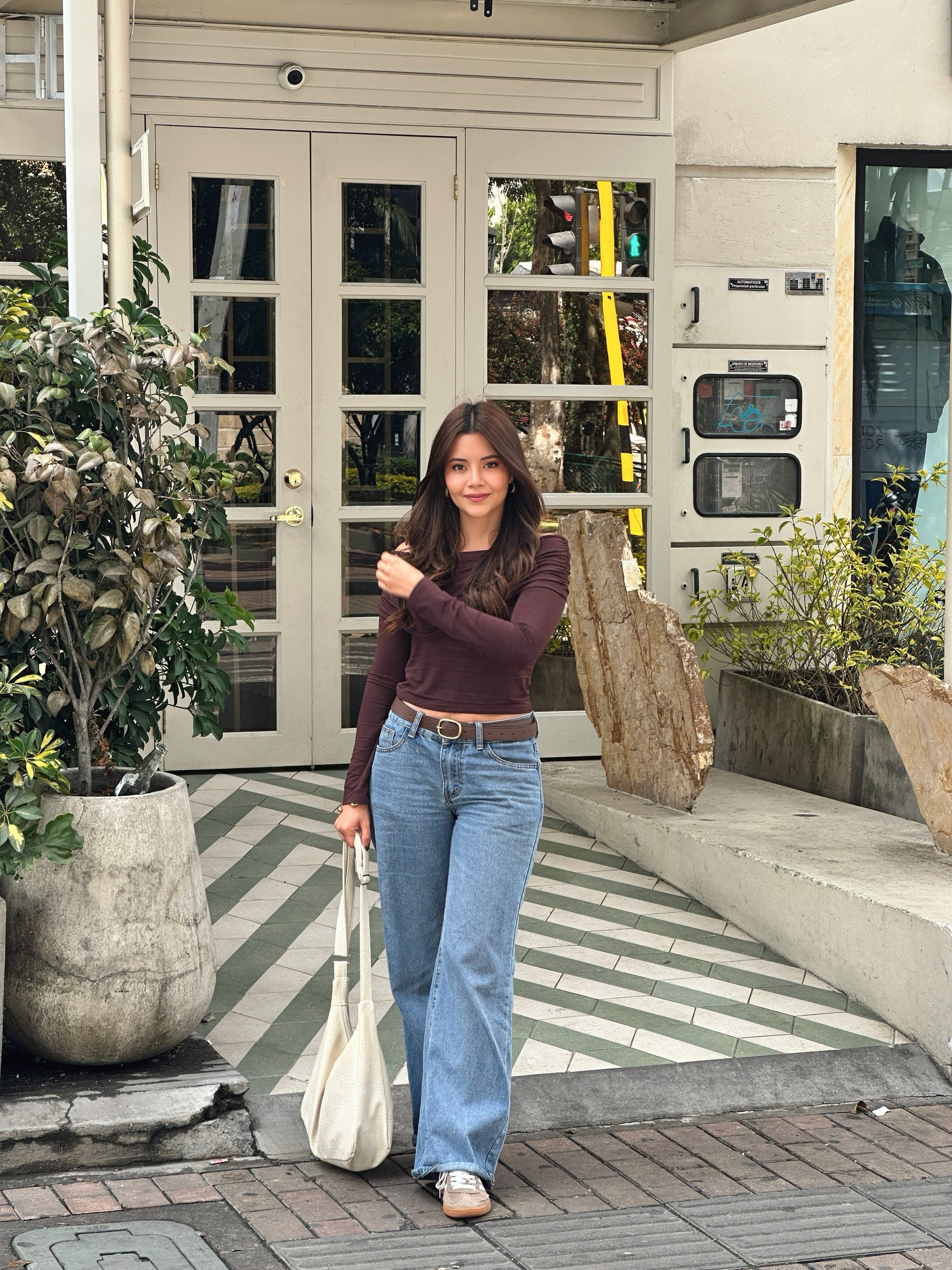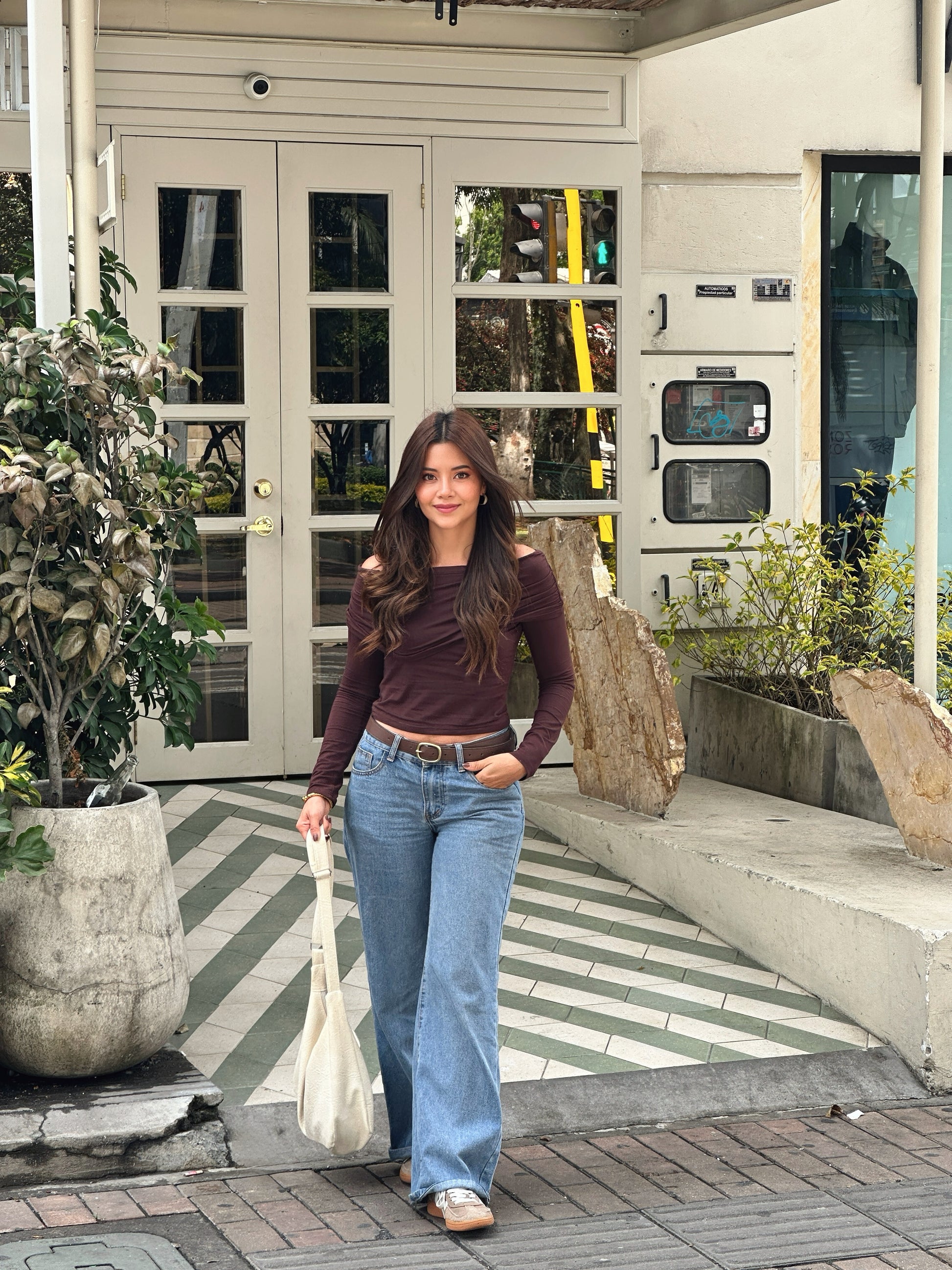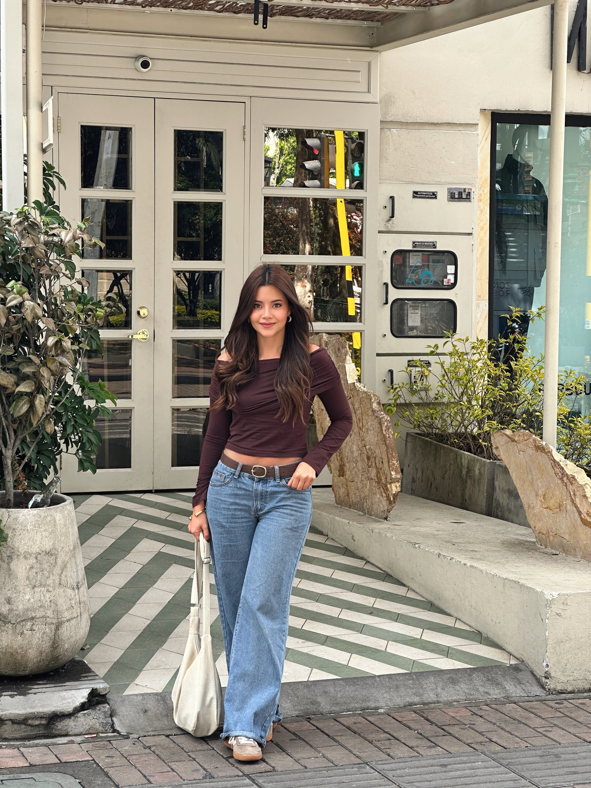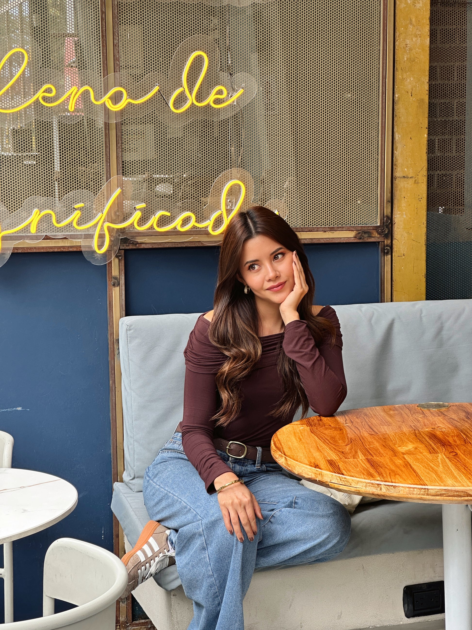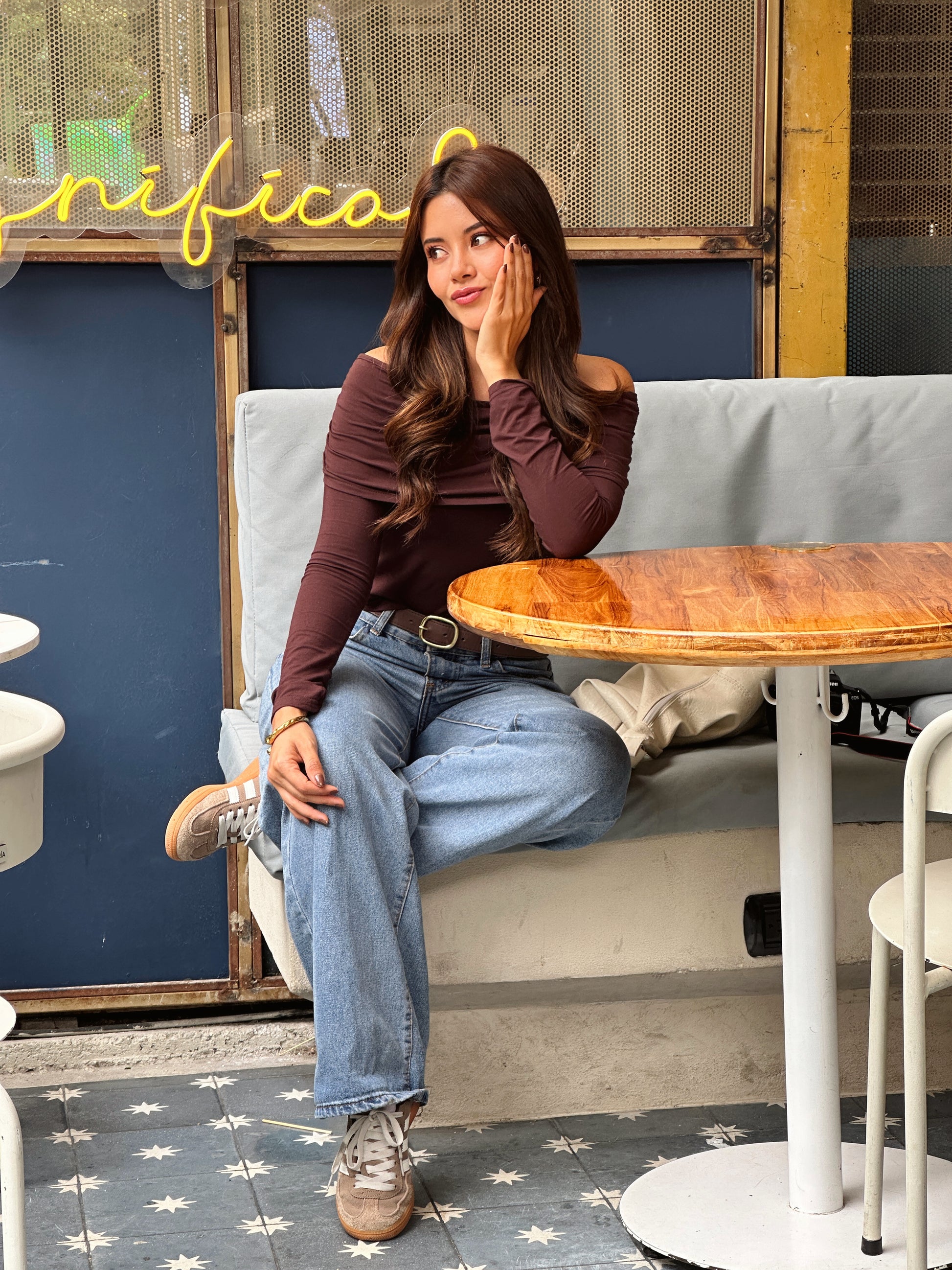 BLUSA MANGA LARGA STRAPLESS MOCHA