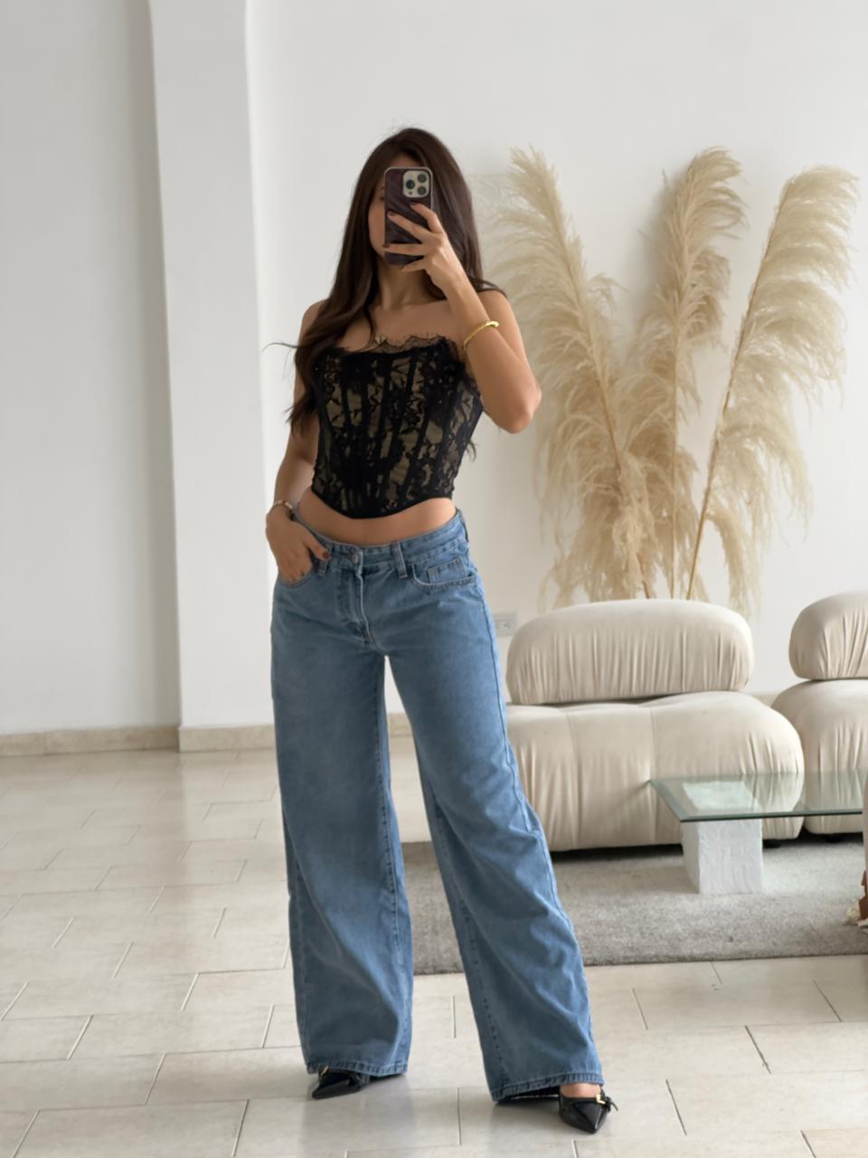 CORSET NEGRO STRAPLESS ENCAJE