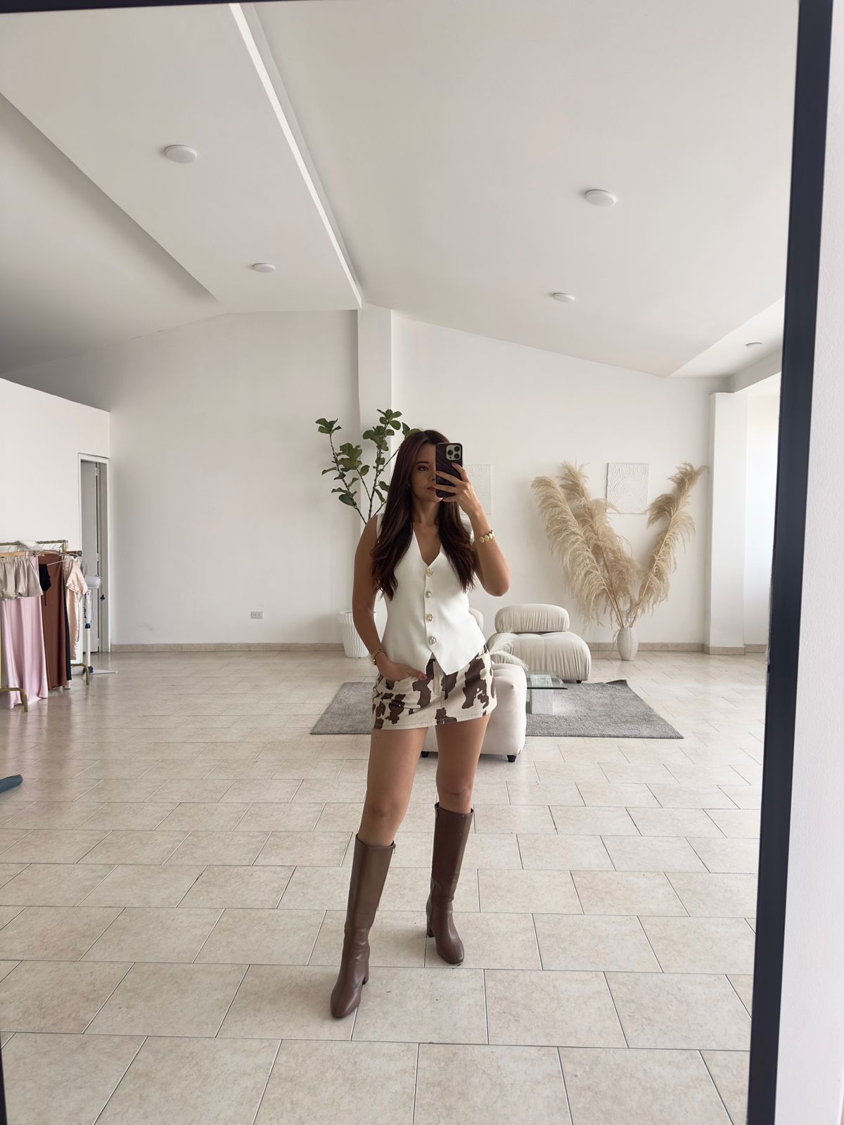 FALDA SHORT COW PRINT BLANCO Y CAFÉ