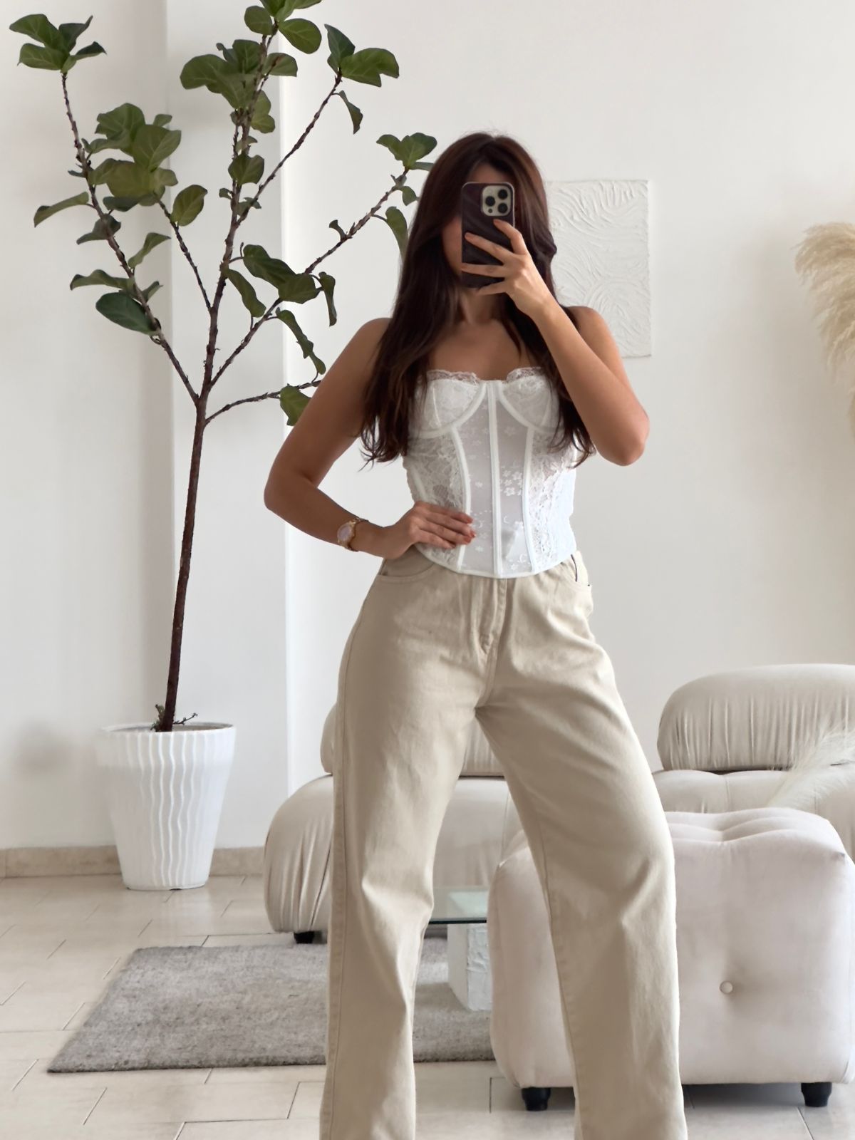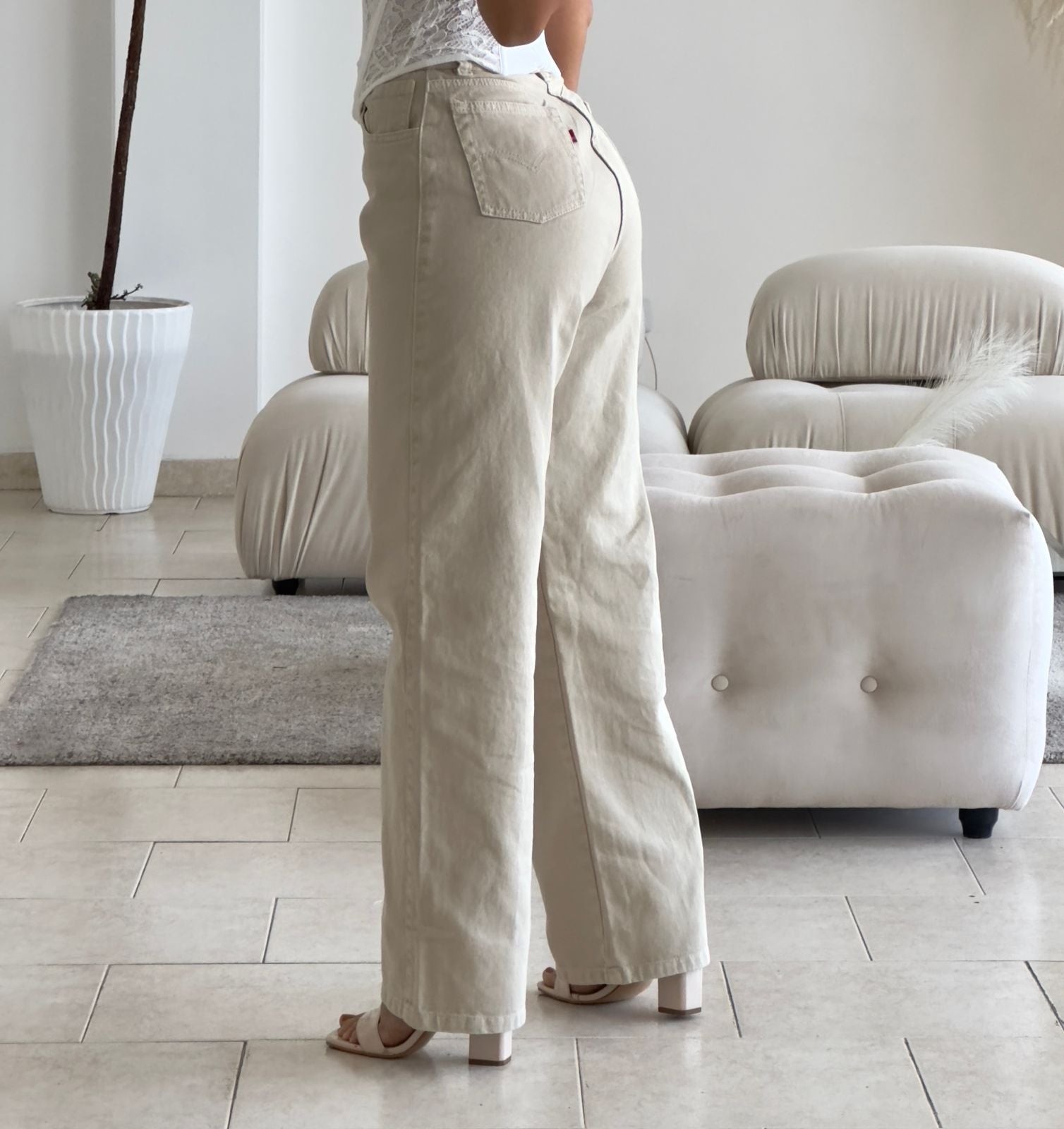 JEAN TIRO ALTO RIGIDO BEIGE
