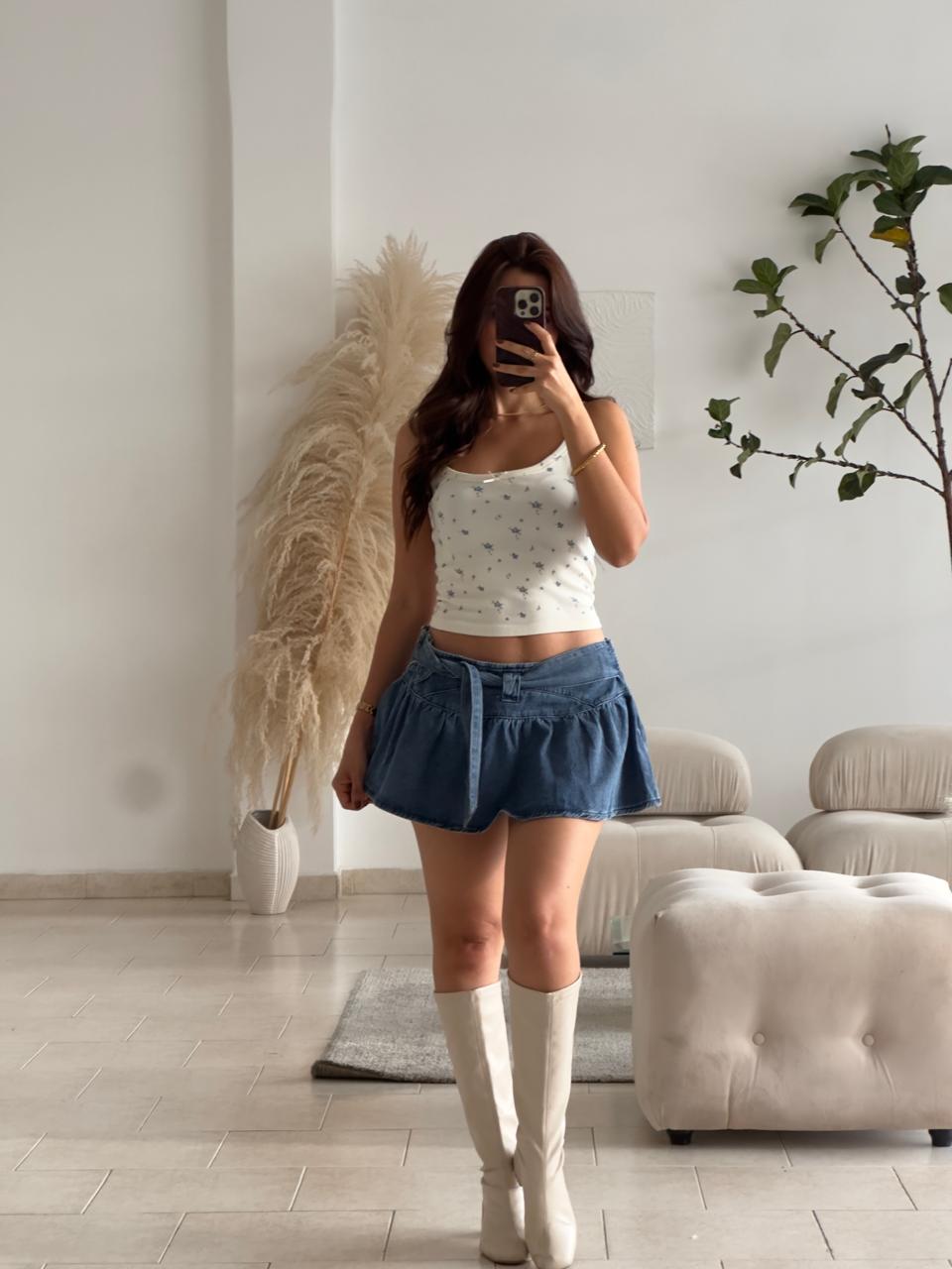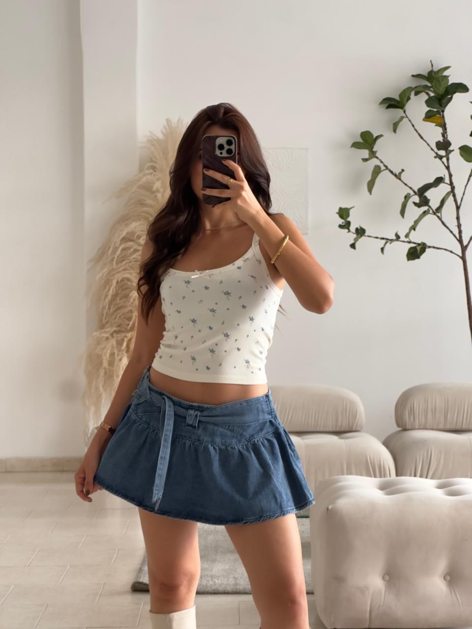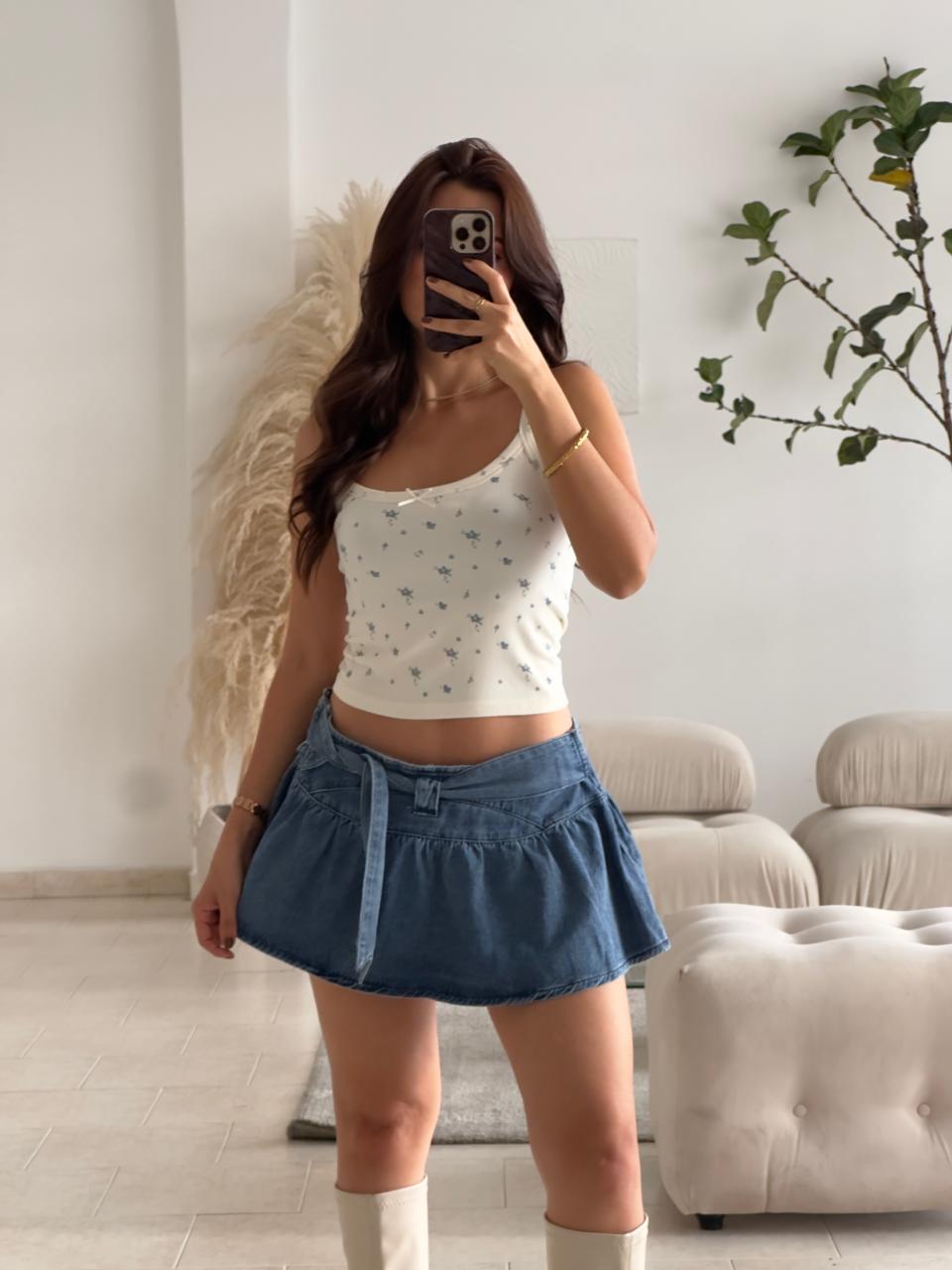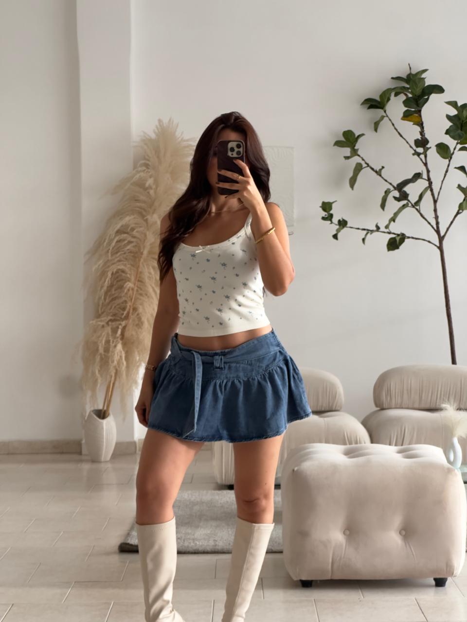 TOP BÁSICO RIB SUAVE FLORECITAS AZULES