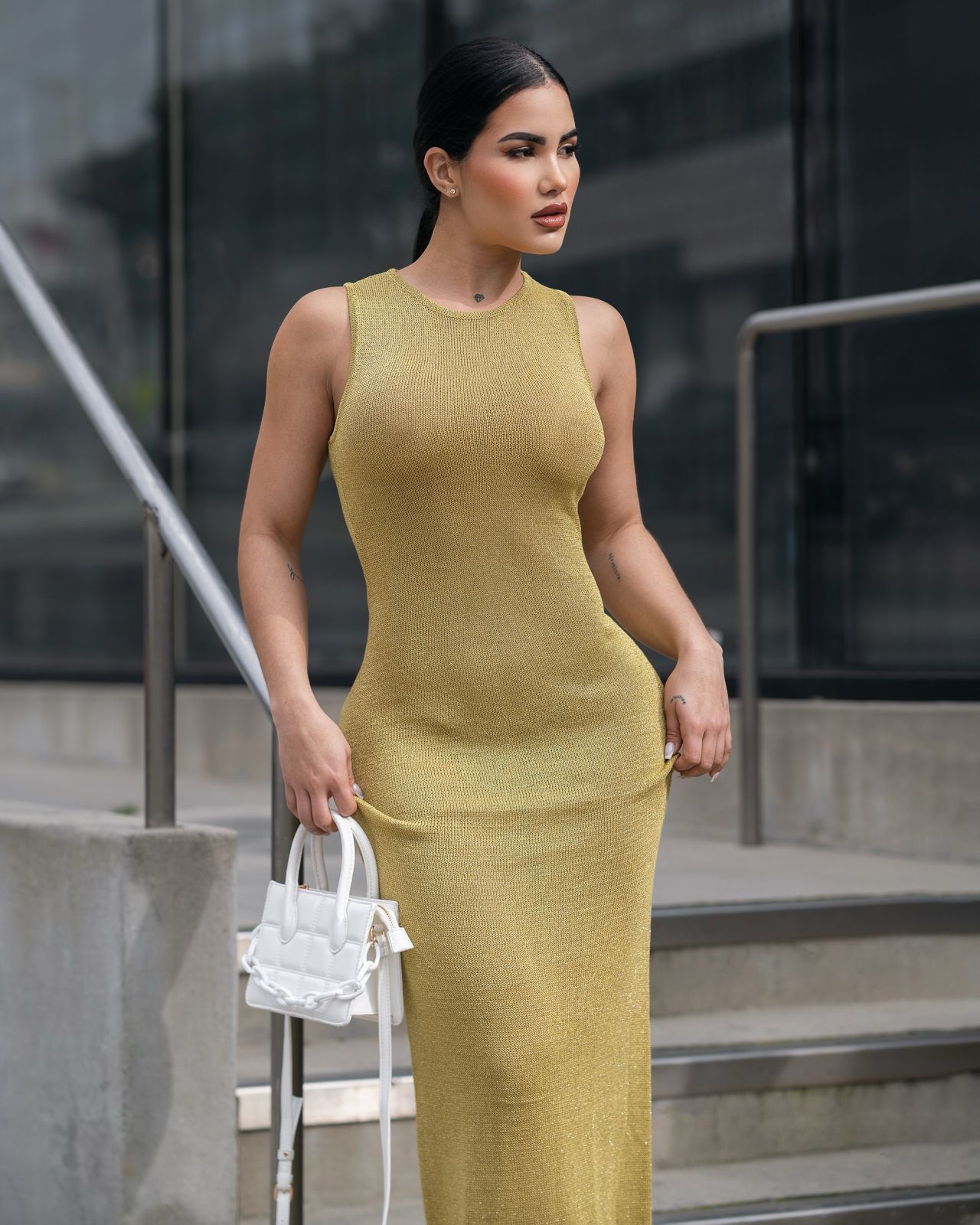 VESTIDO TEJIDO BRILLO VERDE